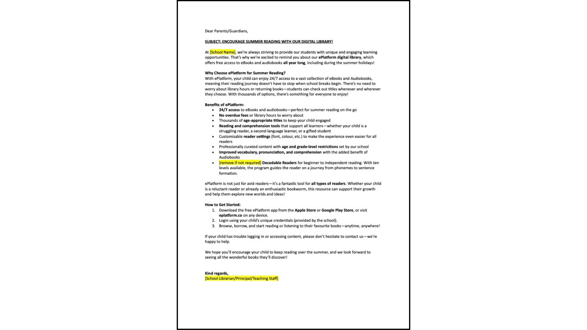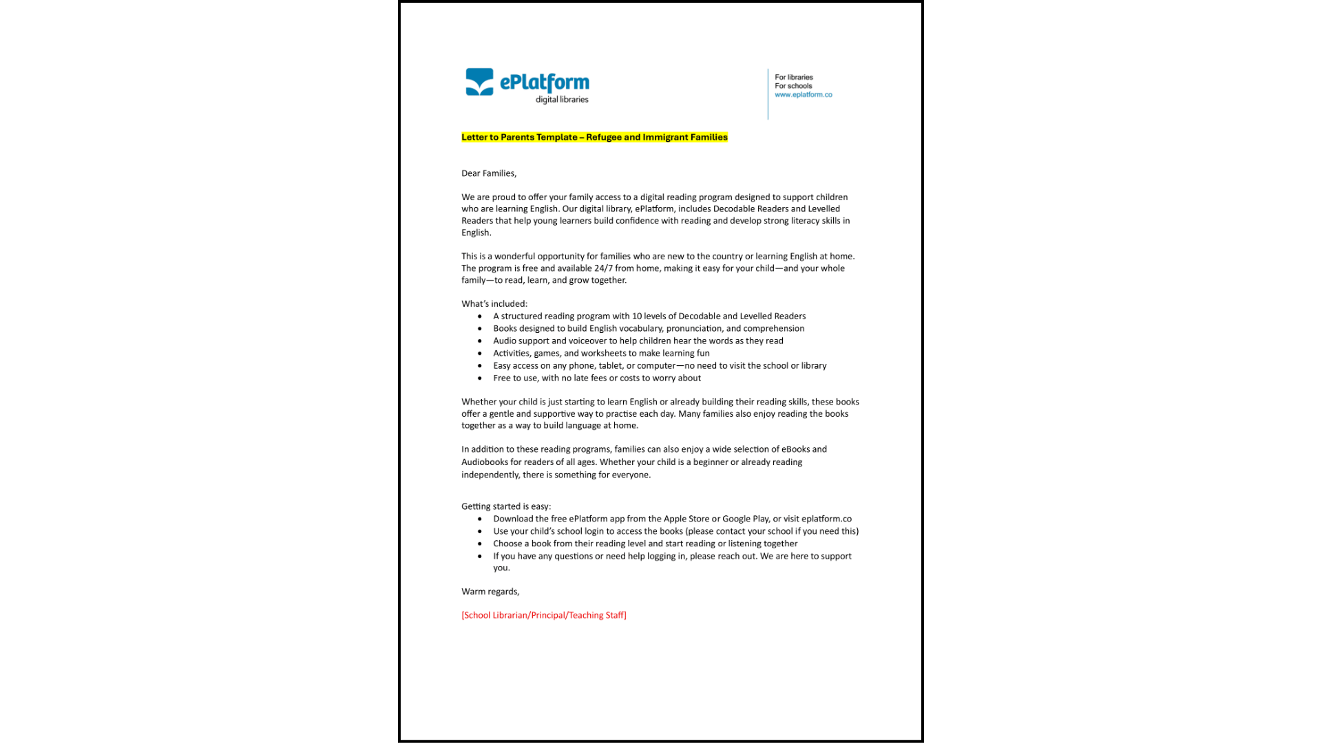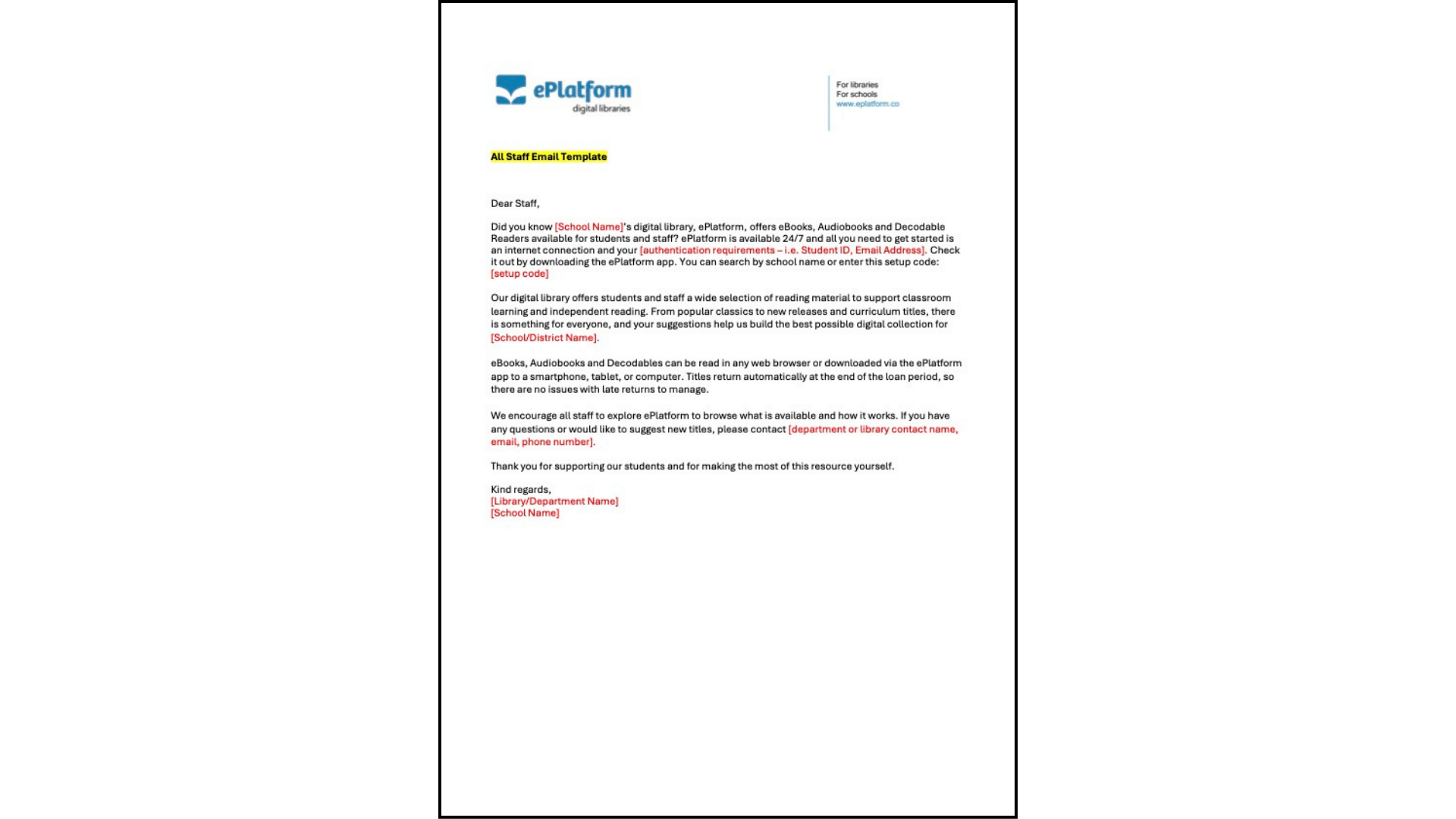 With a few clicks, you can easily spread the word about your ePlatform. Simply download and print. Easy as that!